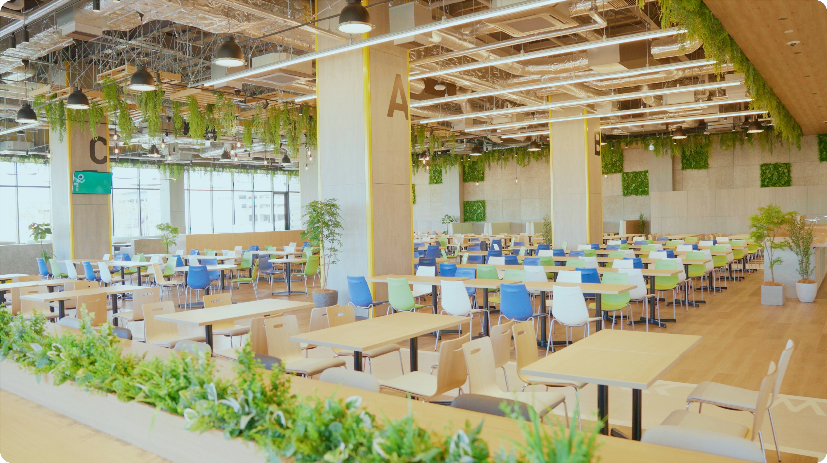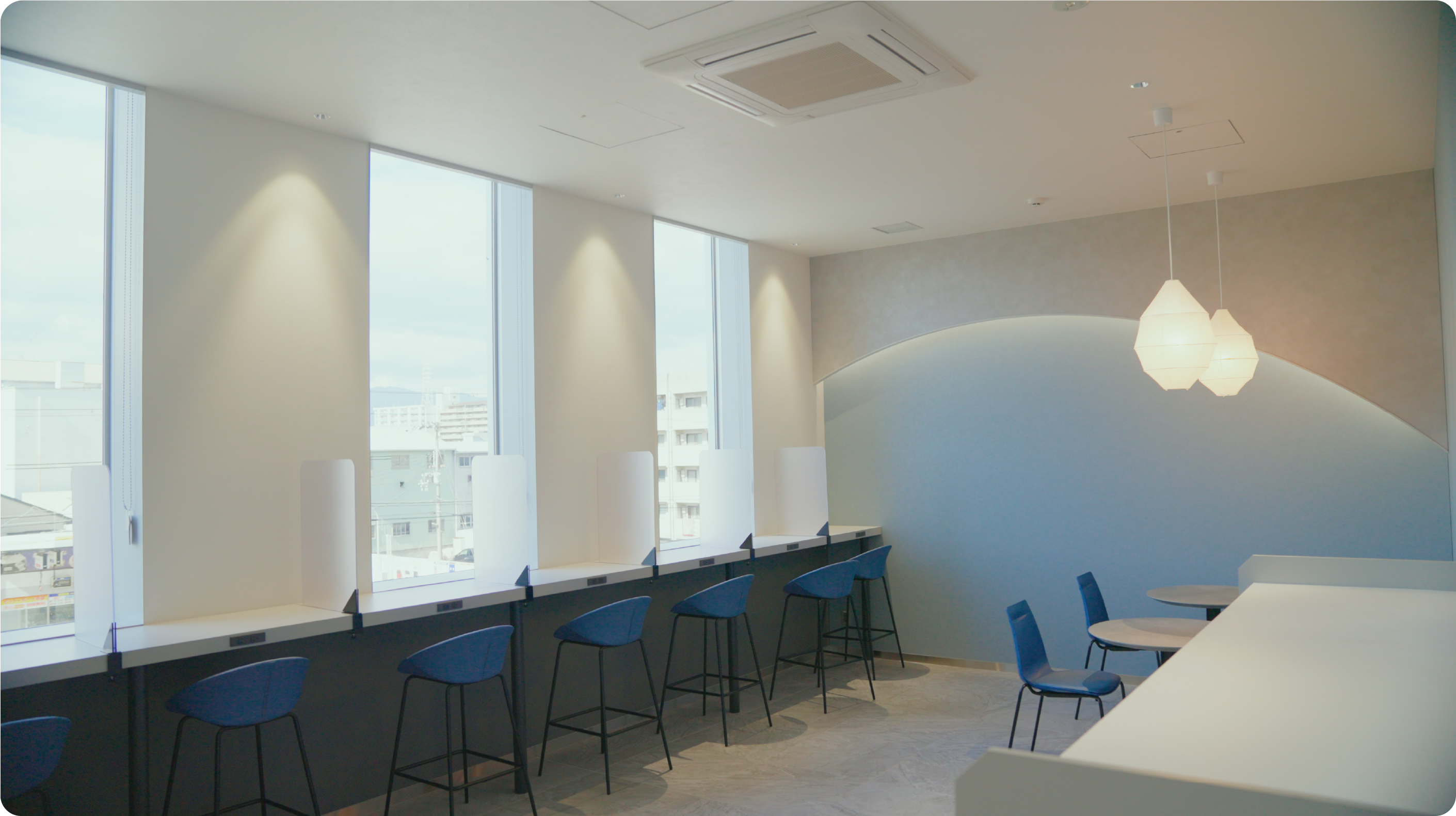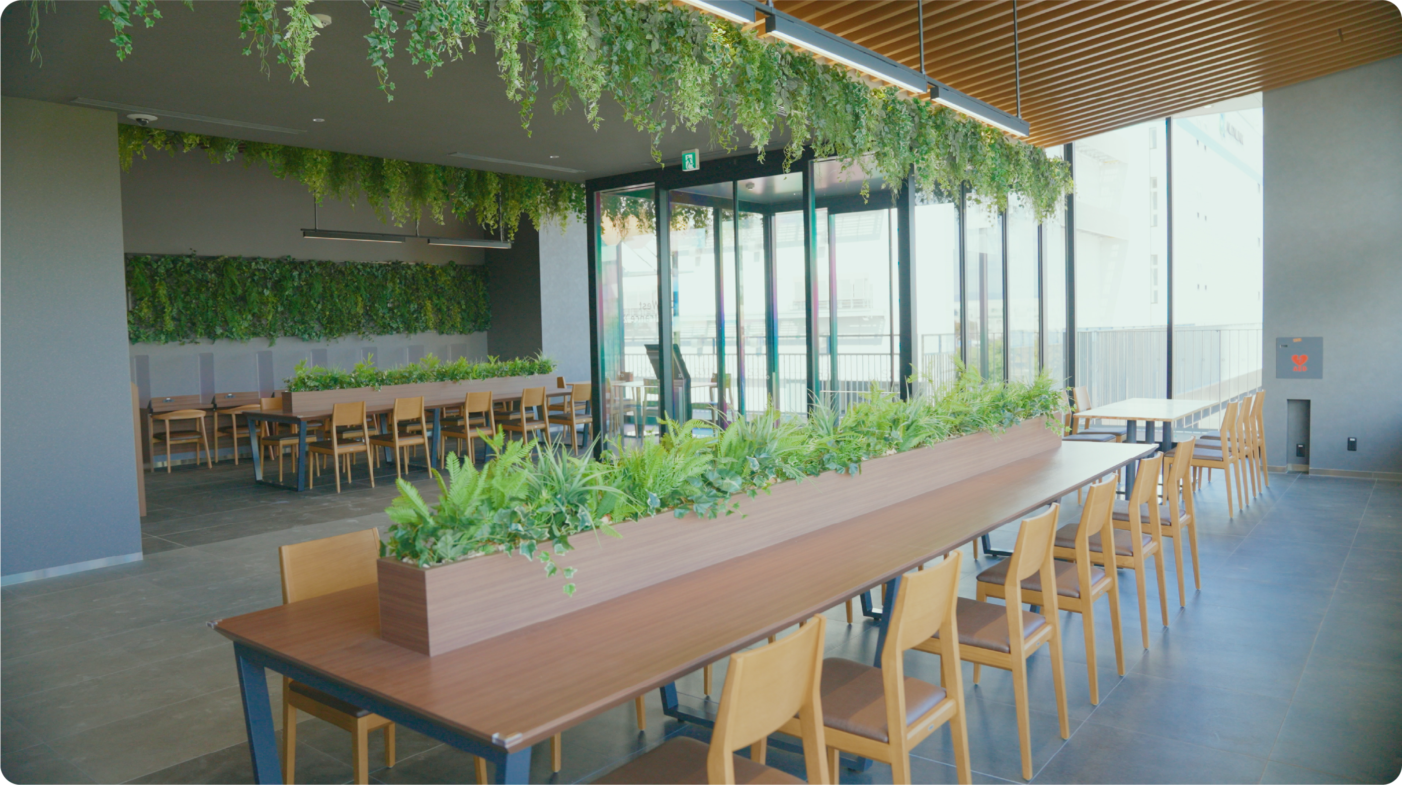 カフェやレストラン、コンビニが併設された共用部は地域にも開放。お食事はもちろん、地域の集まりや語らいの場として自由にお使いください。Wi-Fiと電源 も完備しています。